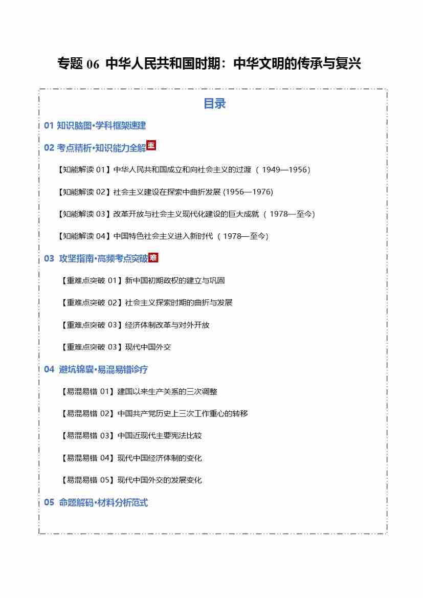 专题06 中华人民共和国时期:中华文明的传承与复兴(知识清单)(全国通用)