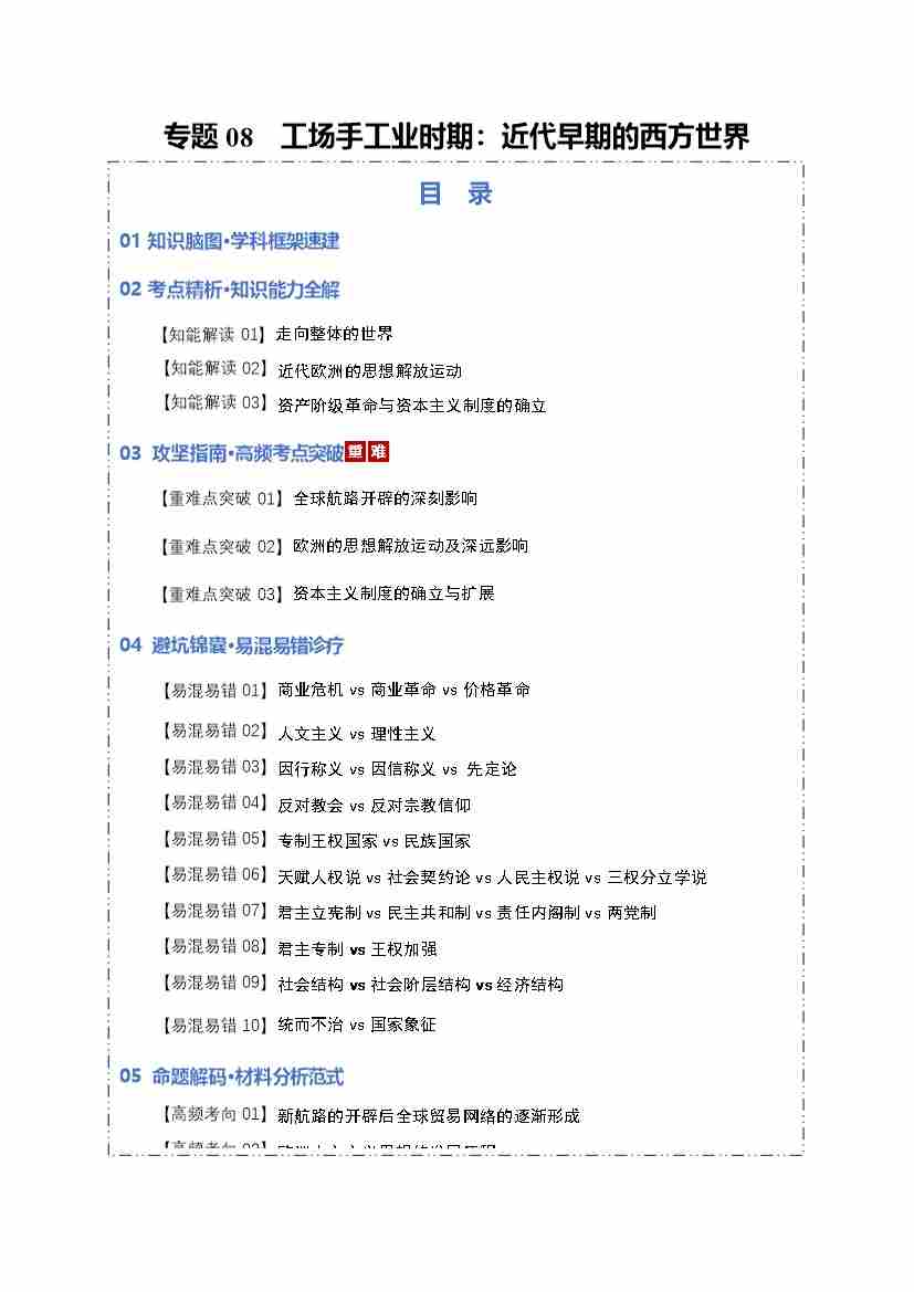 专题08 工场手工业时期:近代早期的西方世界(知识清单)(全国通用)2026年高考历史一轮复习讲练测