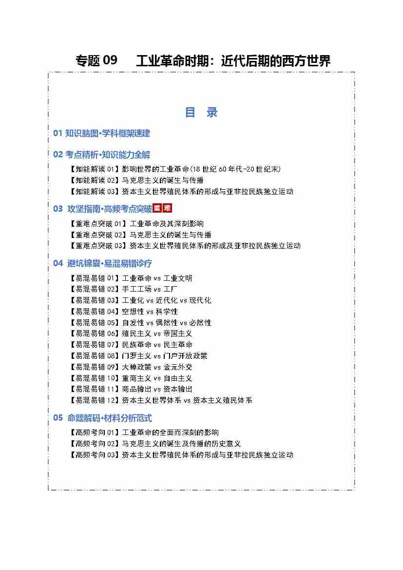 专题09 工业革命时期:近代后期的西方世界(知识清单)(全国通用)2026年高考历史一轮复习讲练测
