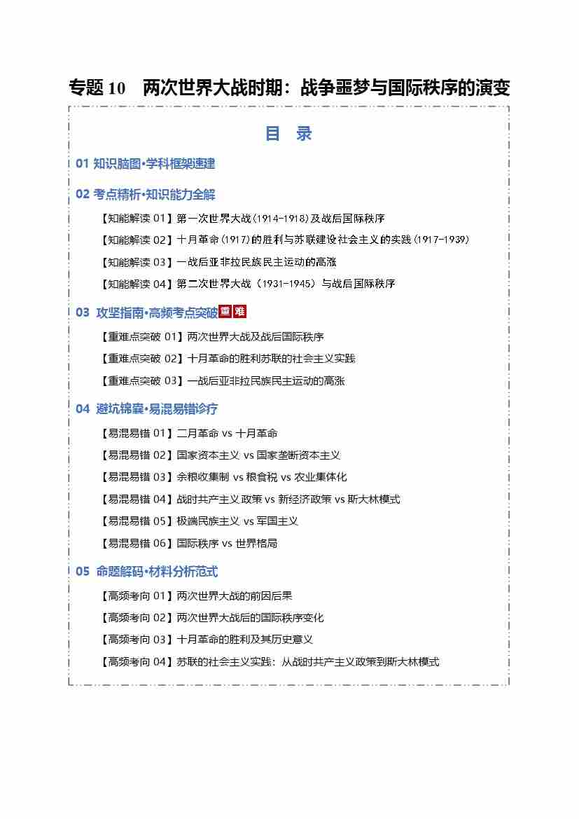专题10 两次世界大战时期:战争噩梦与国际秩序的演变(知识清单)(全国通用)