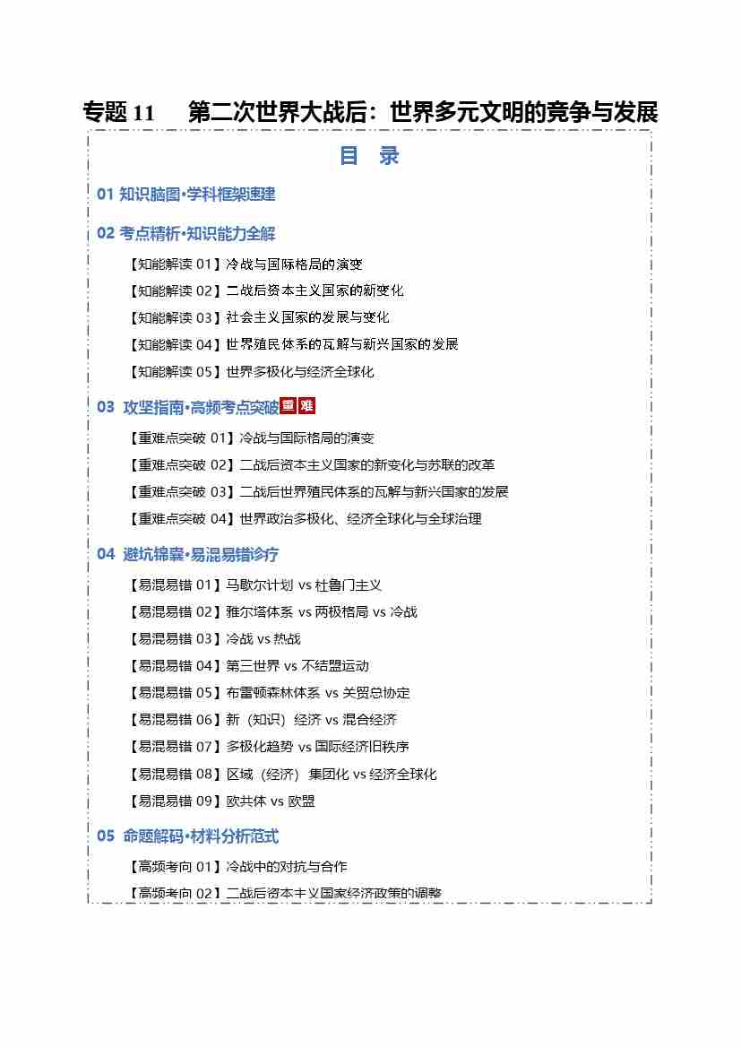 专题11 第二次世界大战后:世界多元文明的竞争与发展(知识清单)(全国通用)