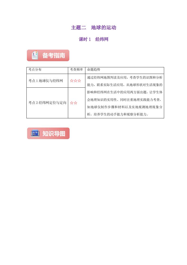 一认识全球.主题二地球的运动.第1课时经纬网.学生版