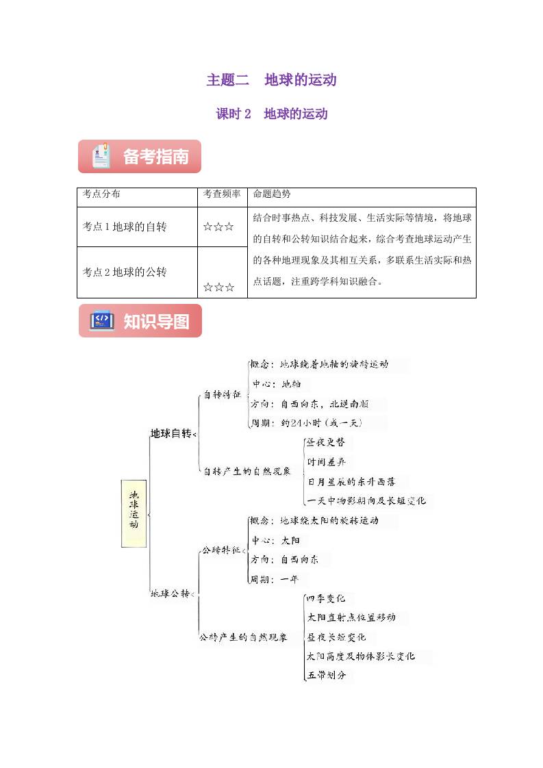 一认识全球.主题二地球的运动.课时2地球的运动.学生版