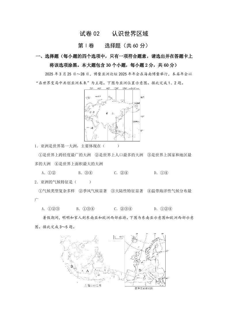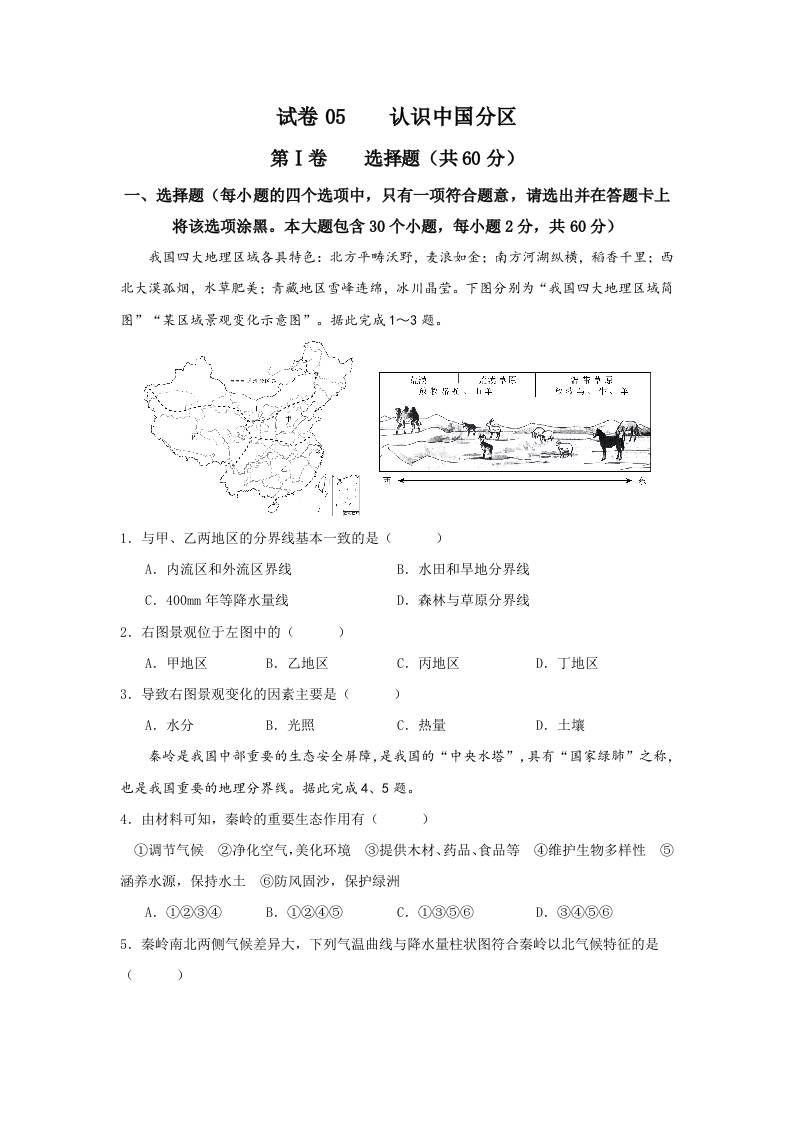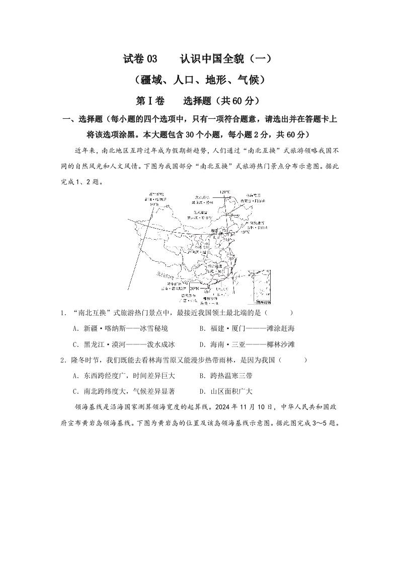 试卷03认识中国全貌(一)(疆域、人口、地形、气候).学生版