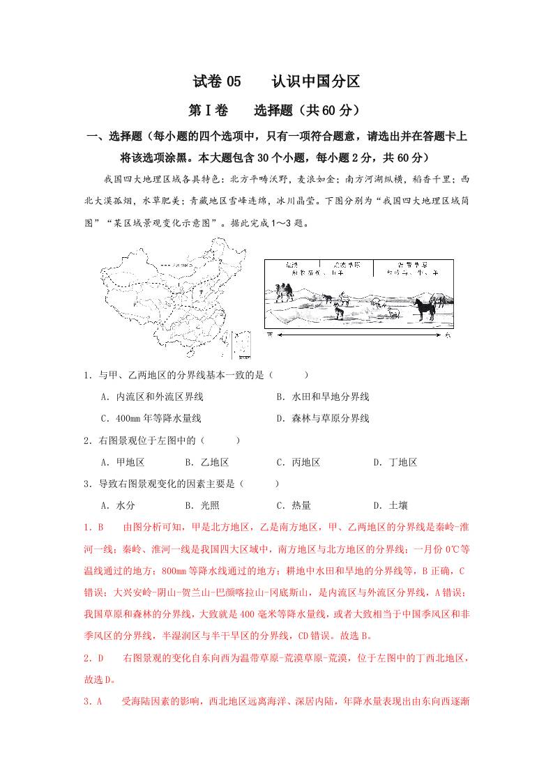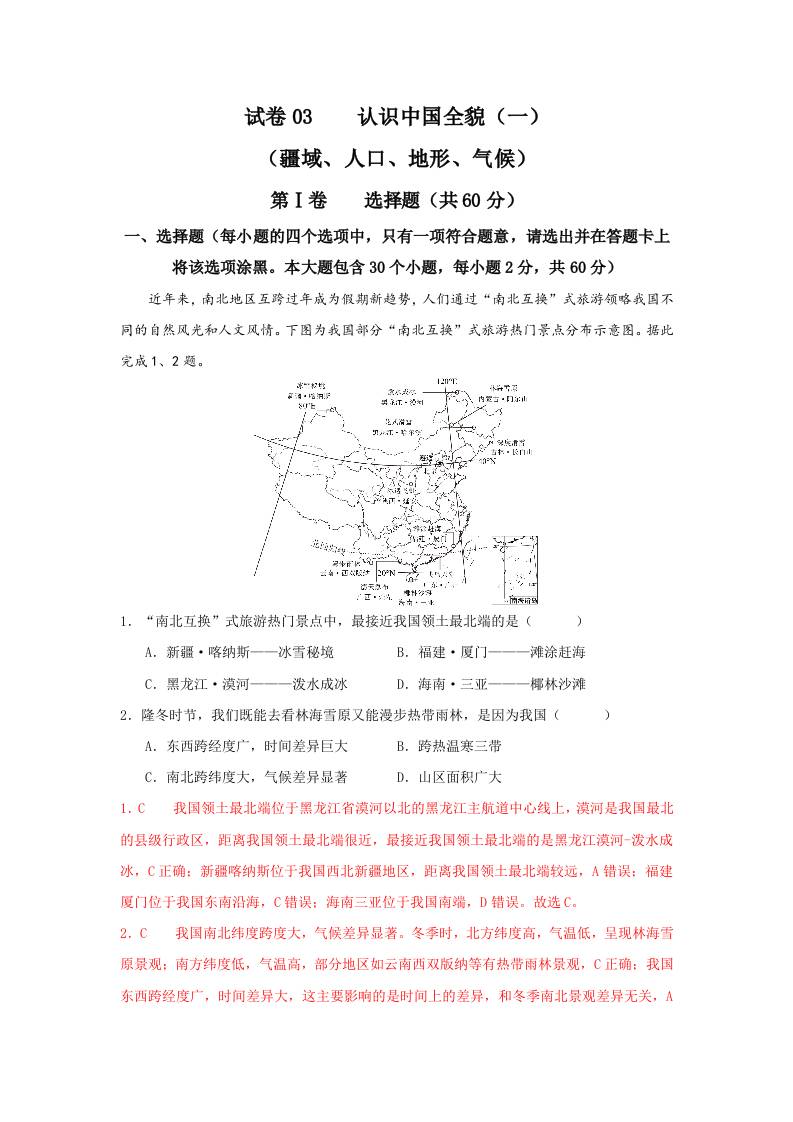 试卷03认识中国全貌(一)(疆域、人口、地形、气候).教师版