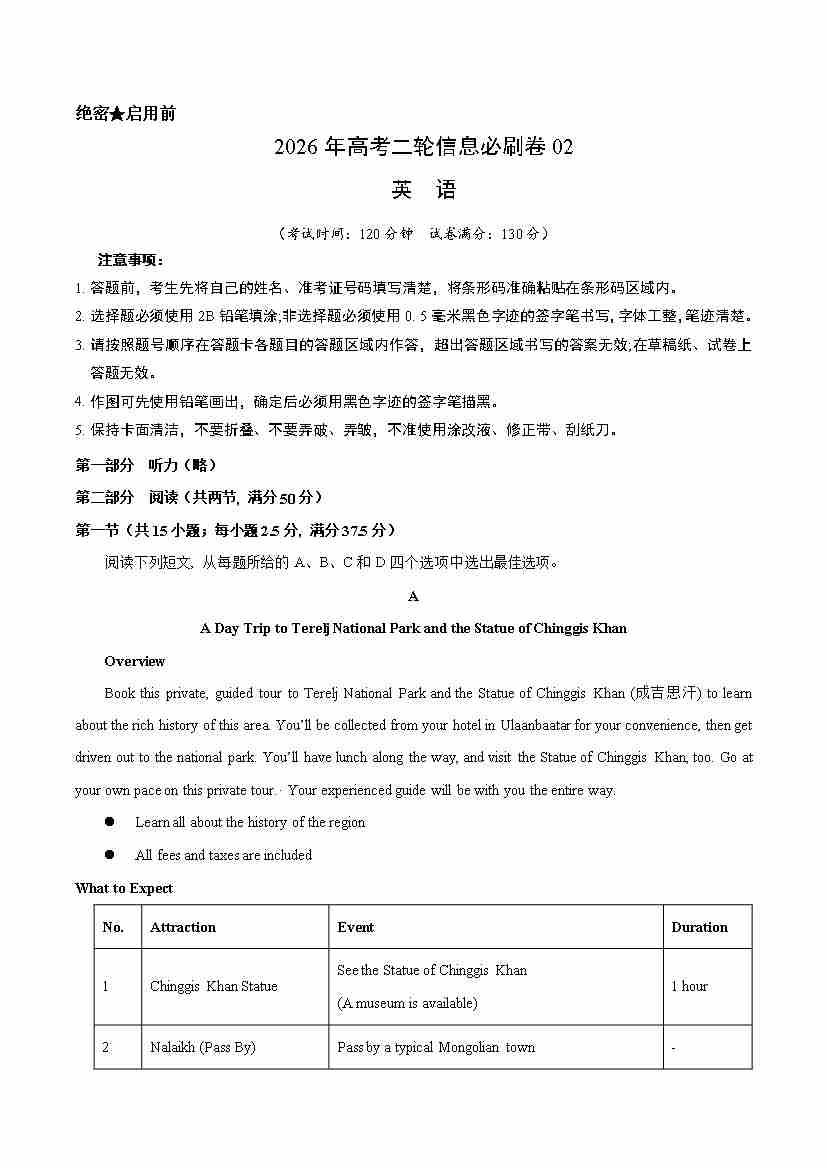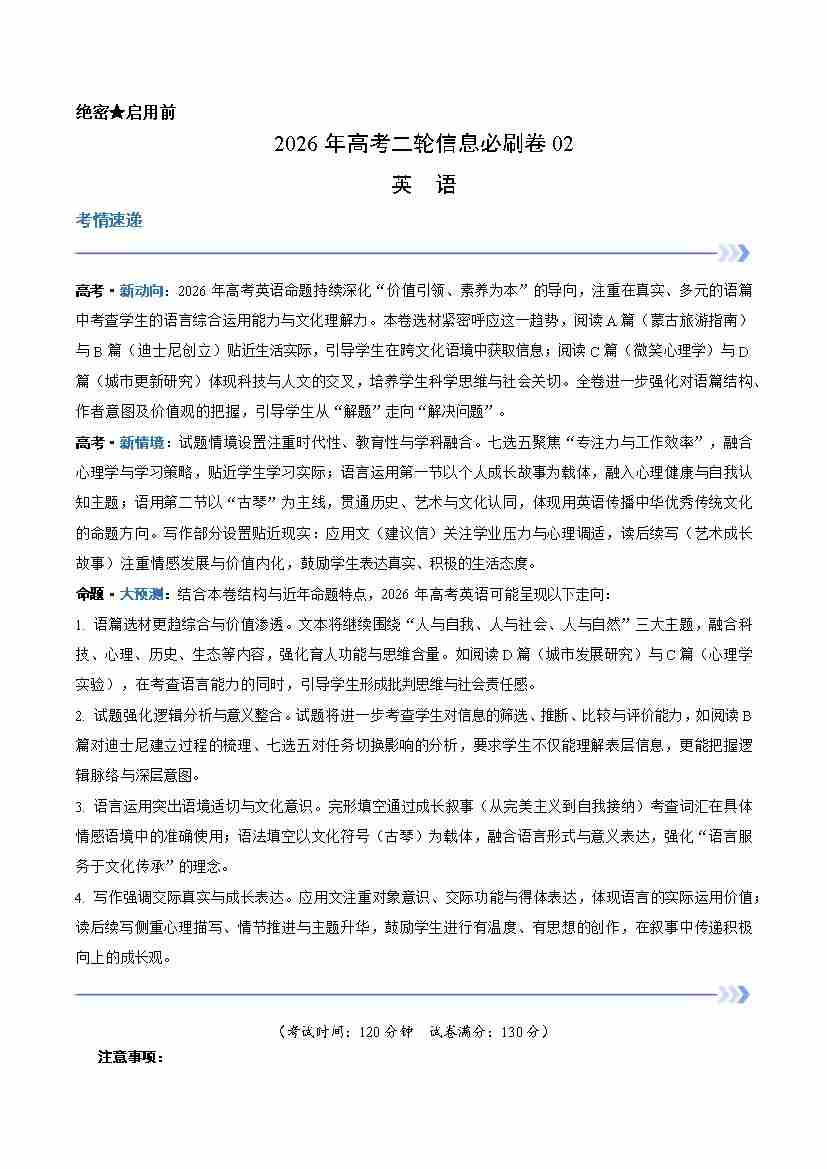 高考英语二轮信息必刷卷02(广东专用)(考试版)