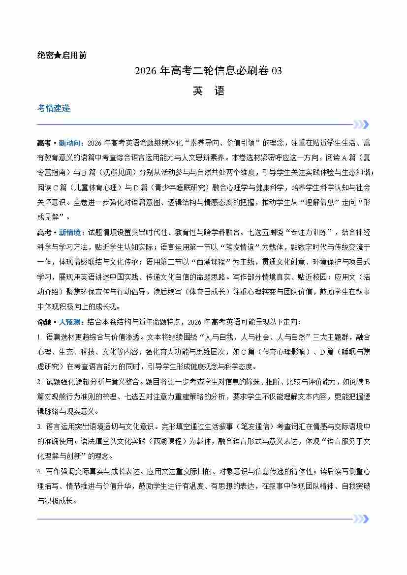 高考英语二轮信息必刷卷03(广东专用)(教师版)