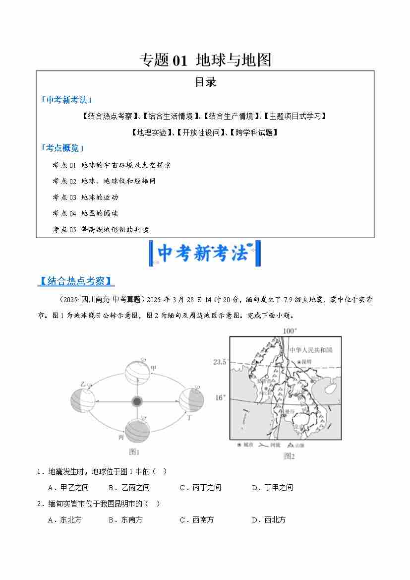 专题01 地球与地图(全国通用)(第01期)(解析版)