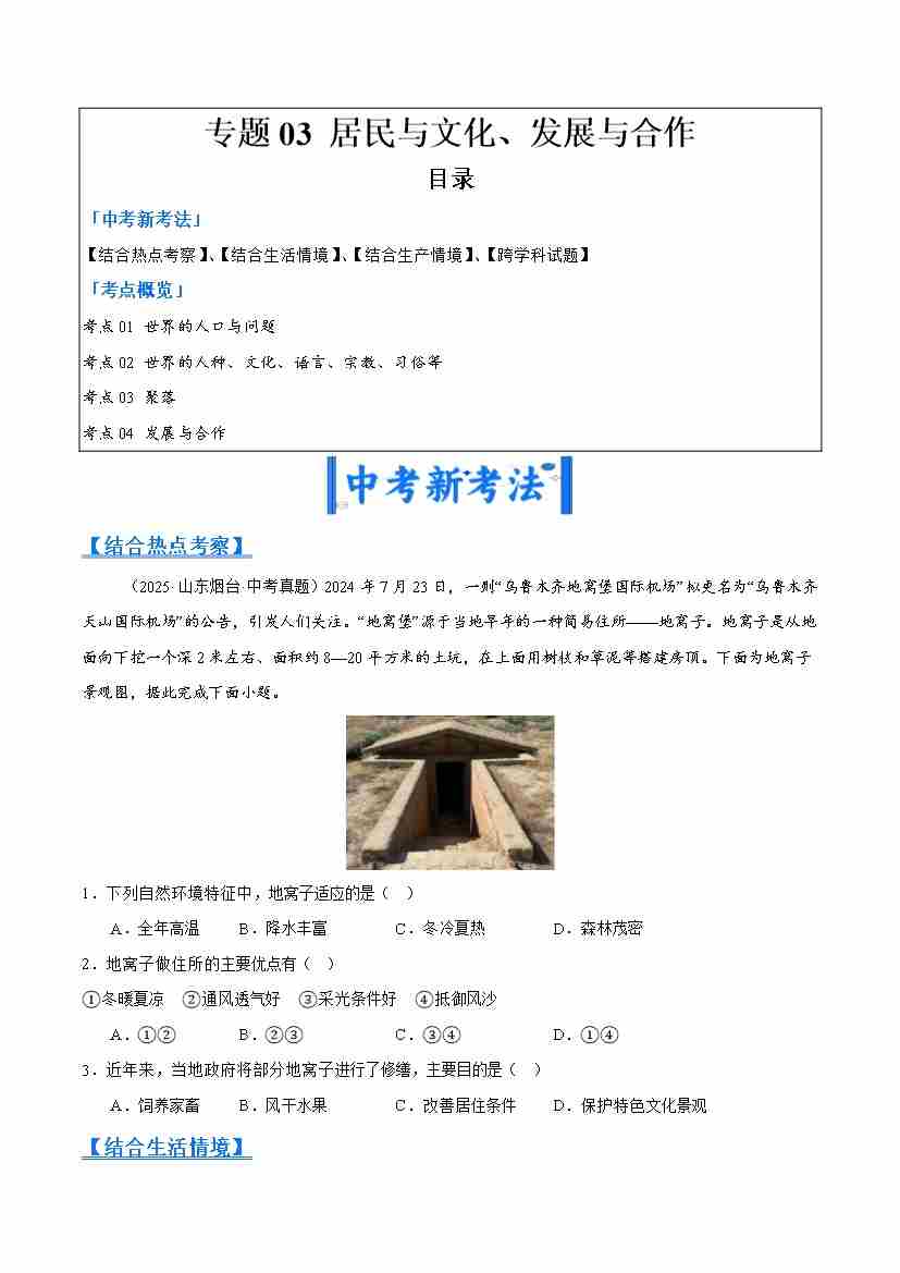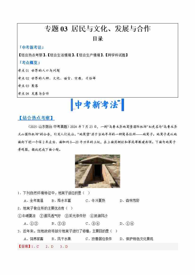 专题03 居民与文化、发展与合作(全国通用)(第01期)(解析版)