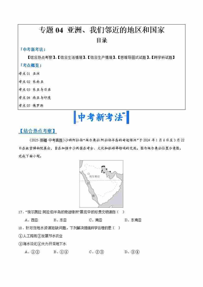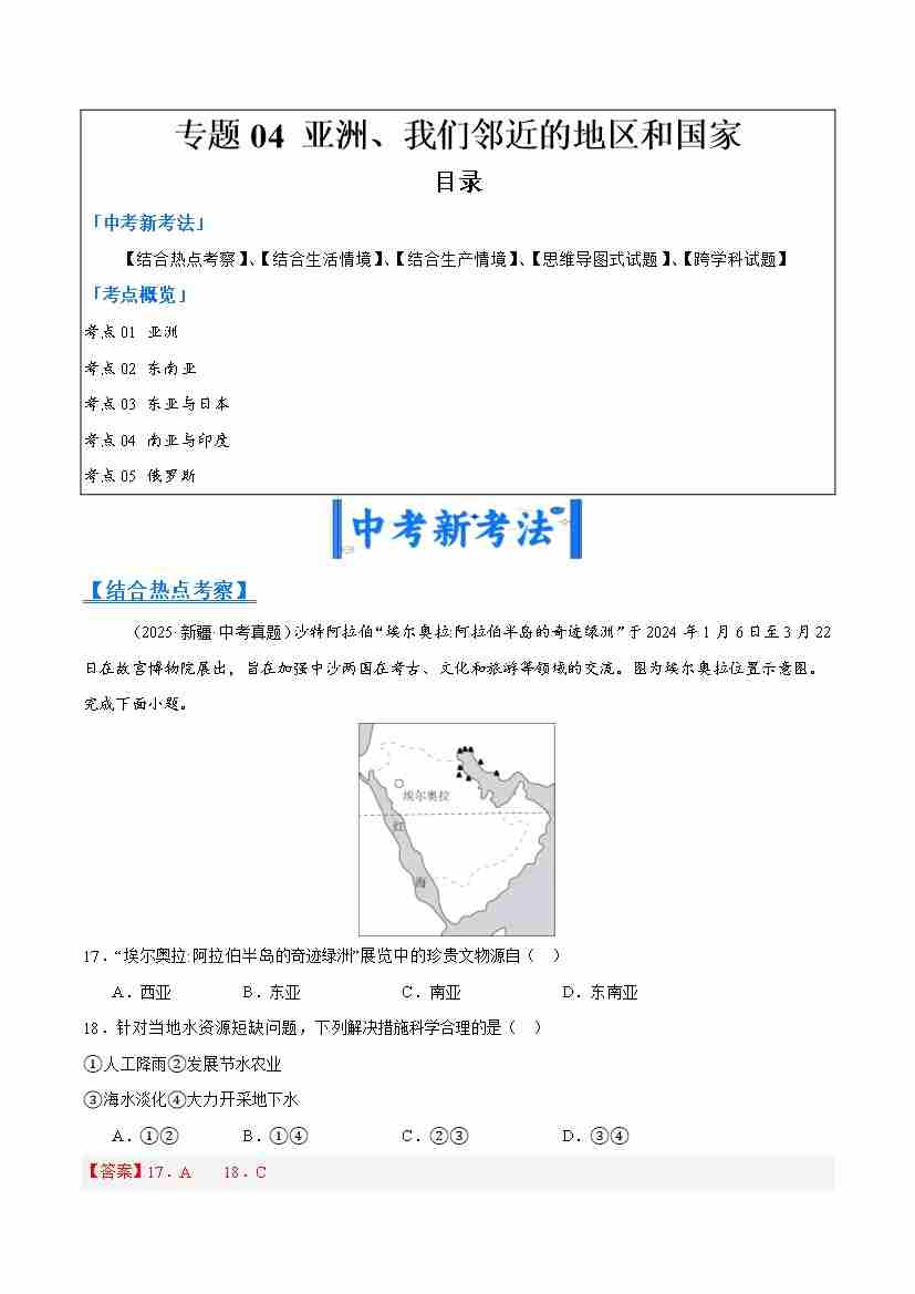 专题04 亚洲、我们邻近的地区和国家(全国通用)(第01期)(原卷版)