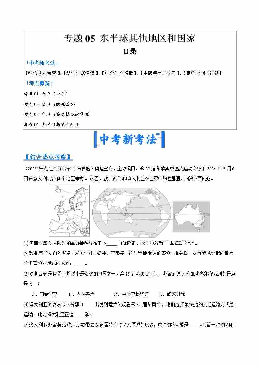 专题05 东半球其他地区和国家(全国通用)(第01期)(原卷版)