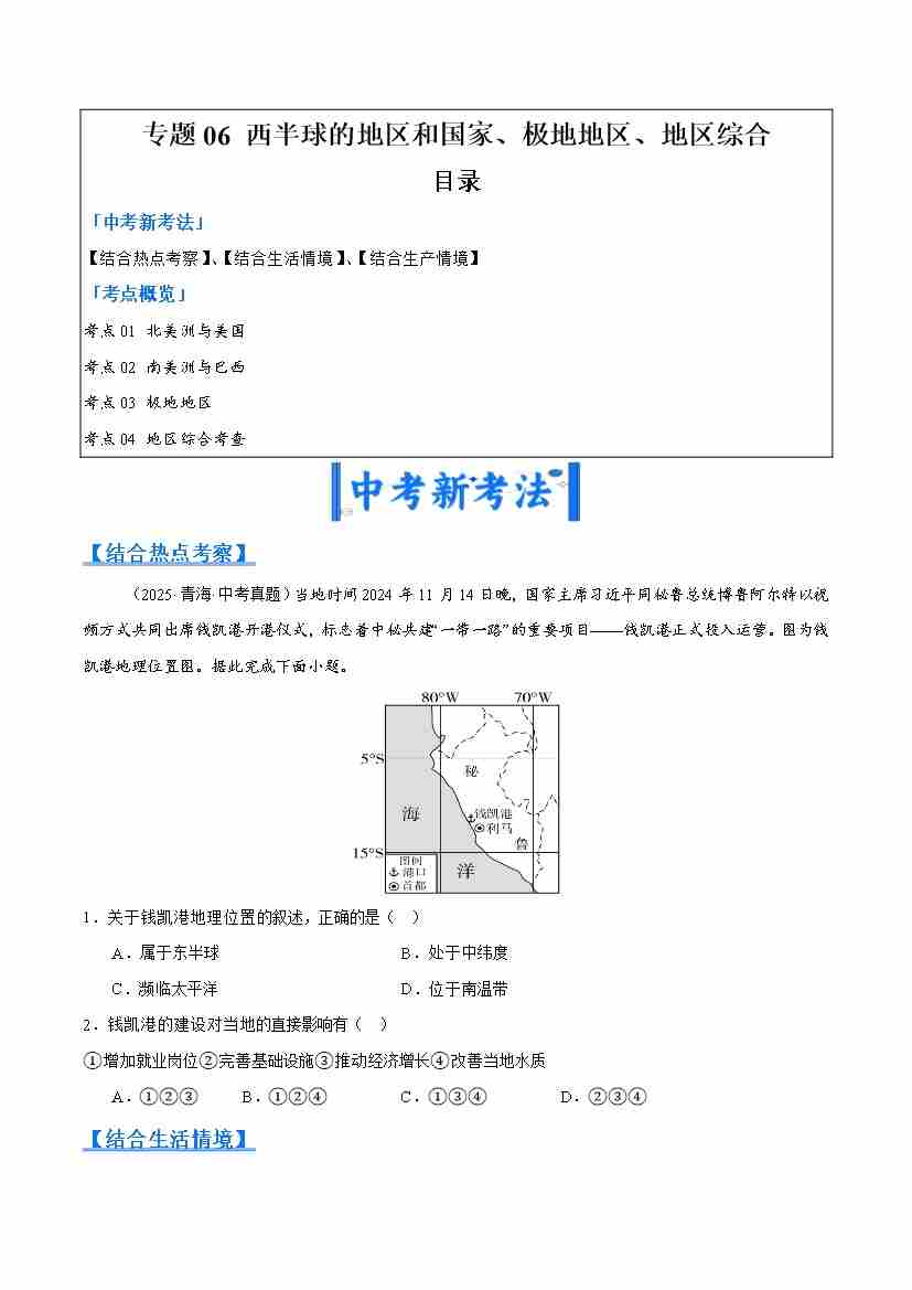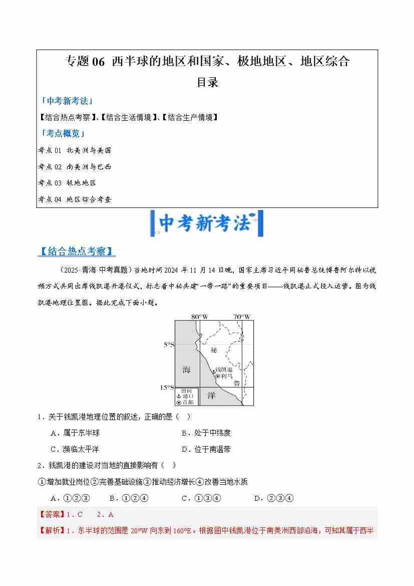 专题06 西半球的地区和国家、极地地区、地区综合(全国通用)(第01期)(解析版)