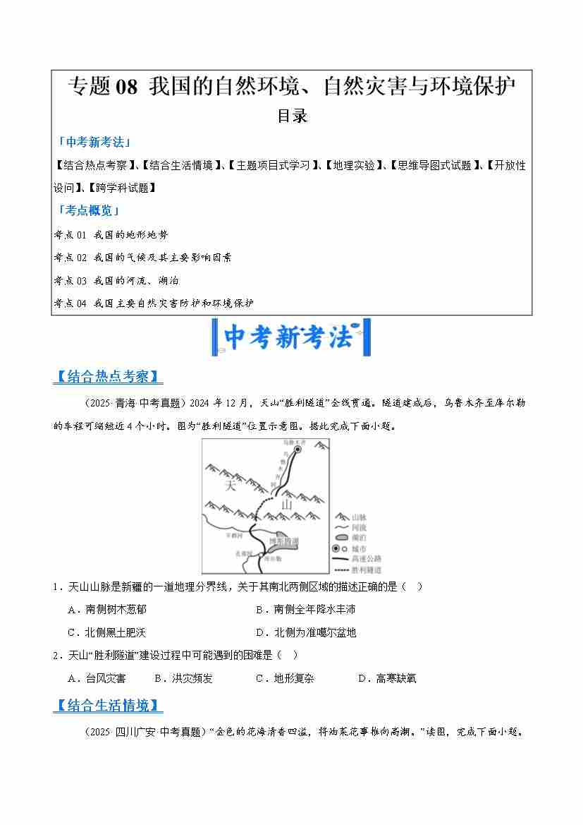 专题08 我国的自然环境、自然灾害与环境保护(全国通用)(第01期)(原卷版)
