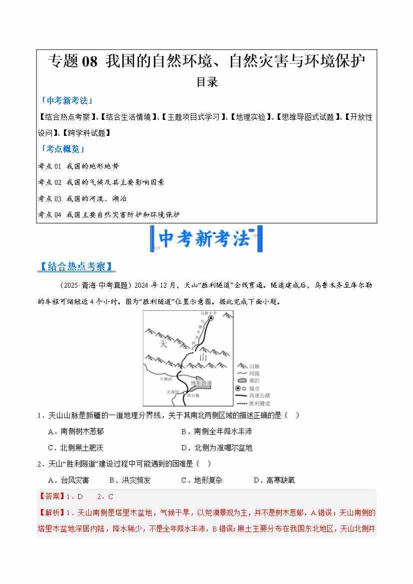 专题08 我国的自然环境、自然灾害与环境保护(全国通用)(第01期)(解析版)