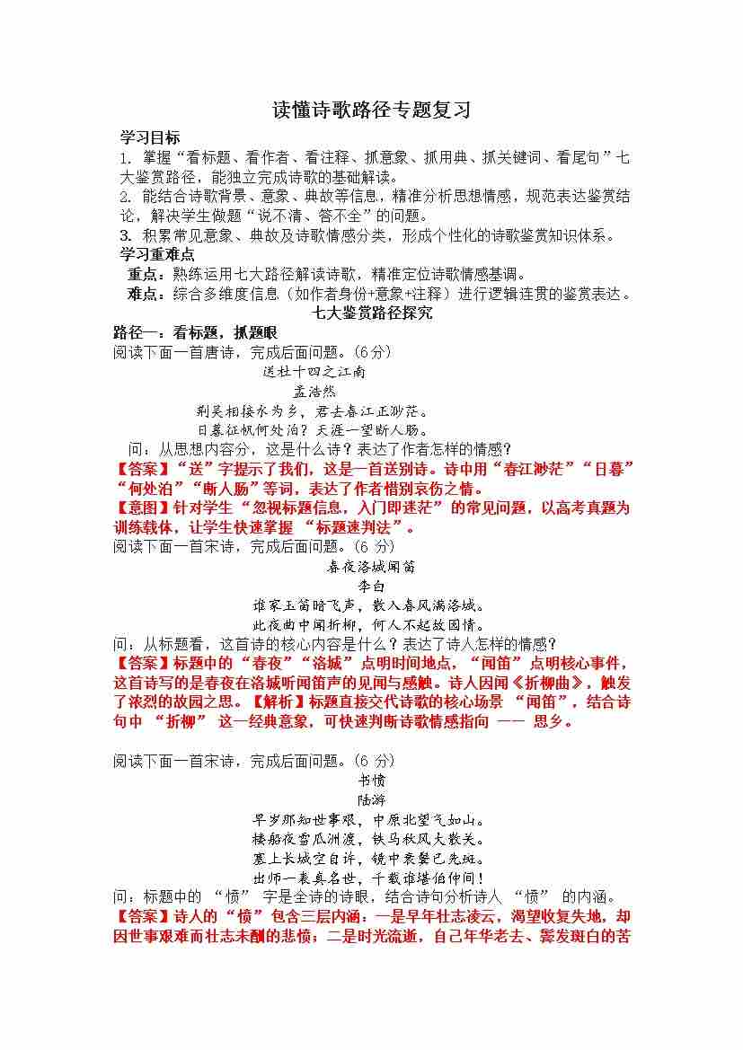 组合小卷08 文言文、古代诗歌(比较阅读)、名篇名句默写(全国通用)(教师版)