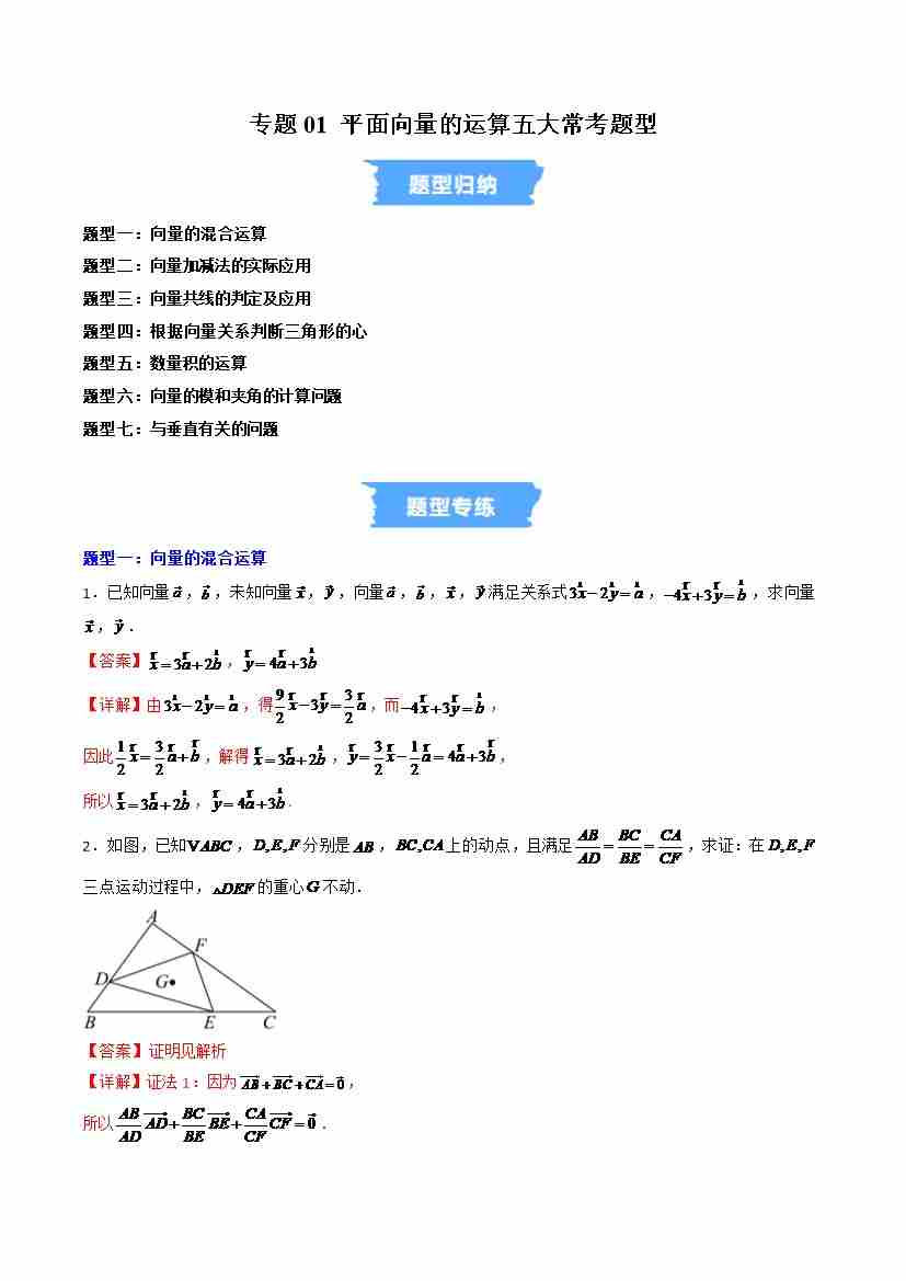 专题01 平面向量的运算七大常考题型(高效培优专项训练)(解析版)