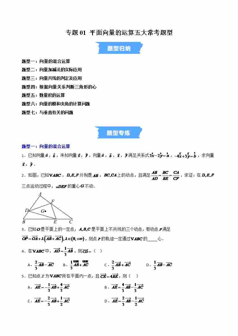 专题01 平面向量的运算七大常考题型(高效培优专项训练)(试题版)
