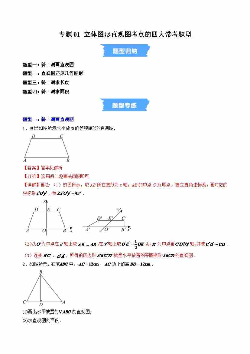 专题01 立体图形直观图考点的四大常考题型(高效培优专项训练)(解析版)