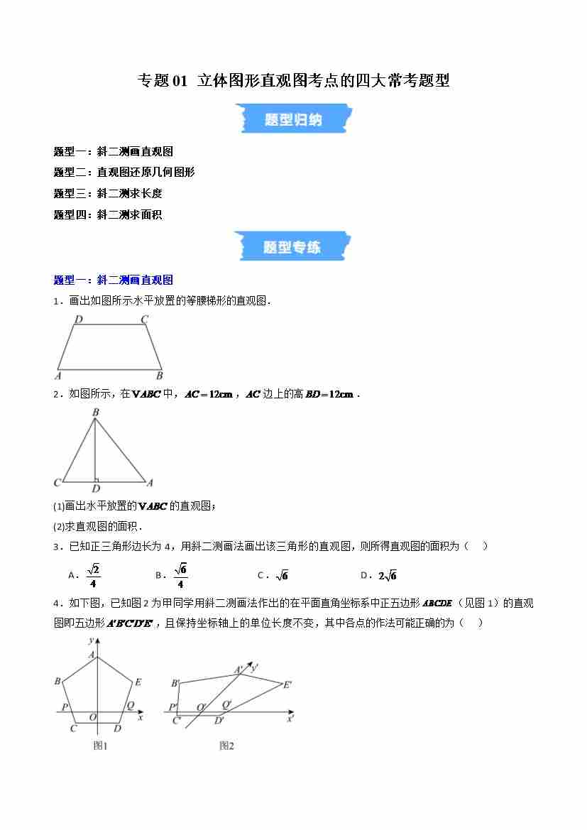 专题01 立体图形直观图考点的四大常考题型(高效培优专项训练)(试题版)