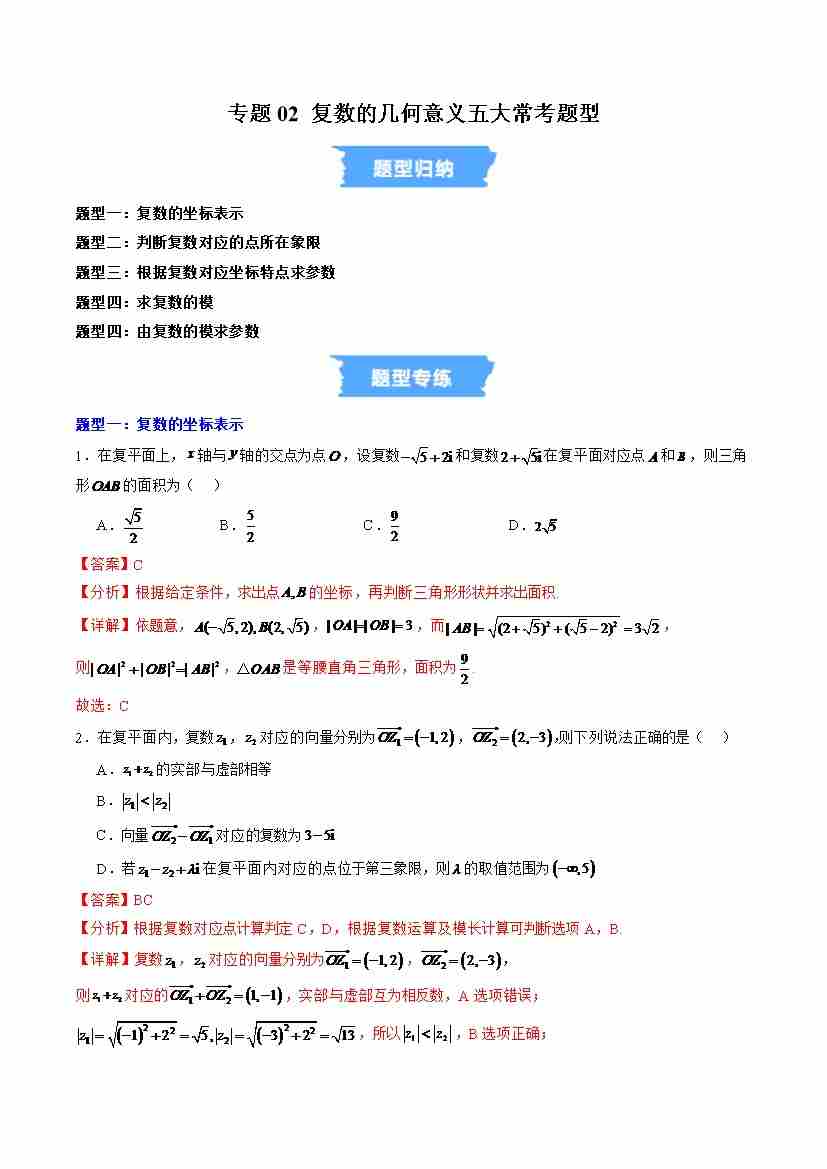 专题02 复数的几何意义五大常考题型(高效培优专项训练)(解析版)