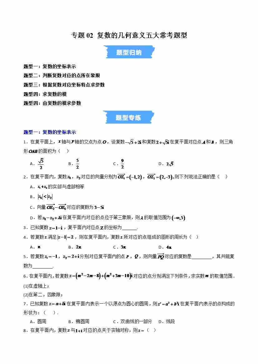 专题02 复数的几何意义五大常考题型(高效培优专项训练)(试题版)