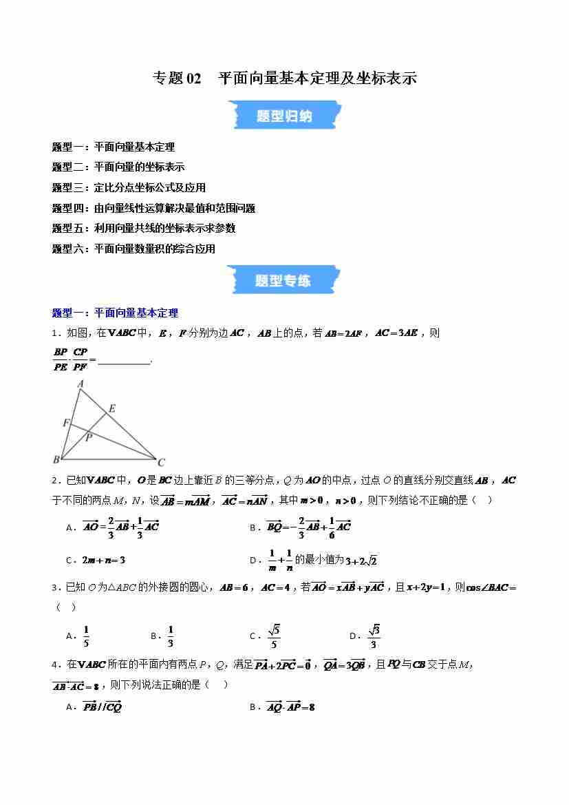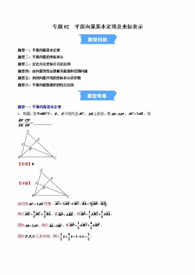专题02 平面向量基本定理及坐标表示六大常考题型(高效培优专项训练)(解析版)