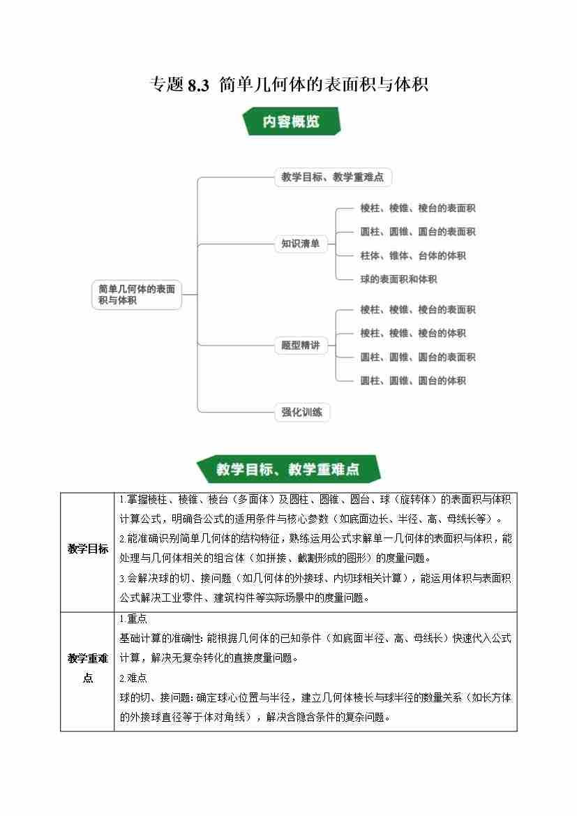 专题8.3 简单几何体的表面积与体积(高效培优讲义)(试题版)