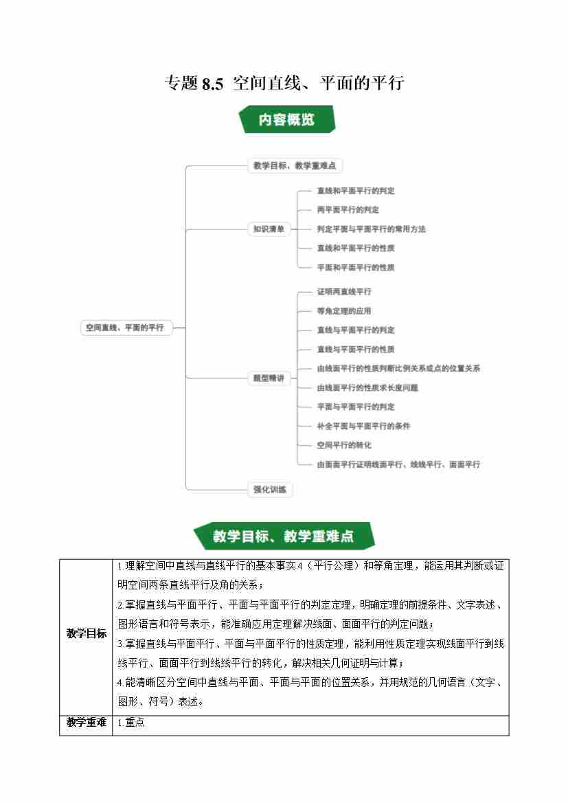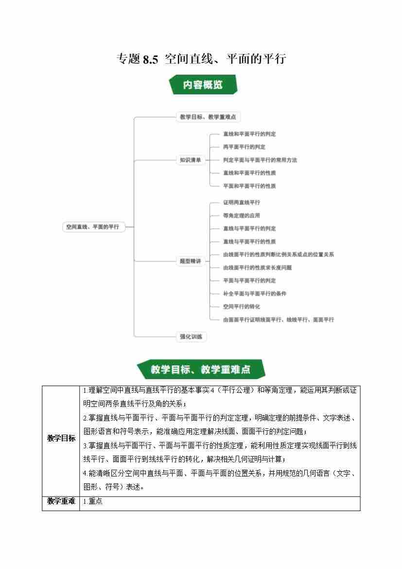 专题8.5 空间直线、平面的平行(高效培优讲义)(试题版)