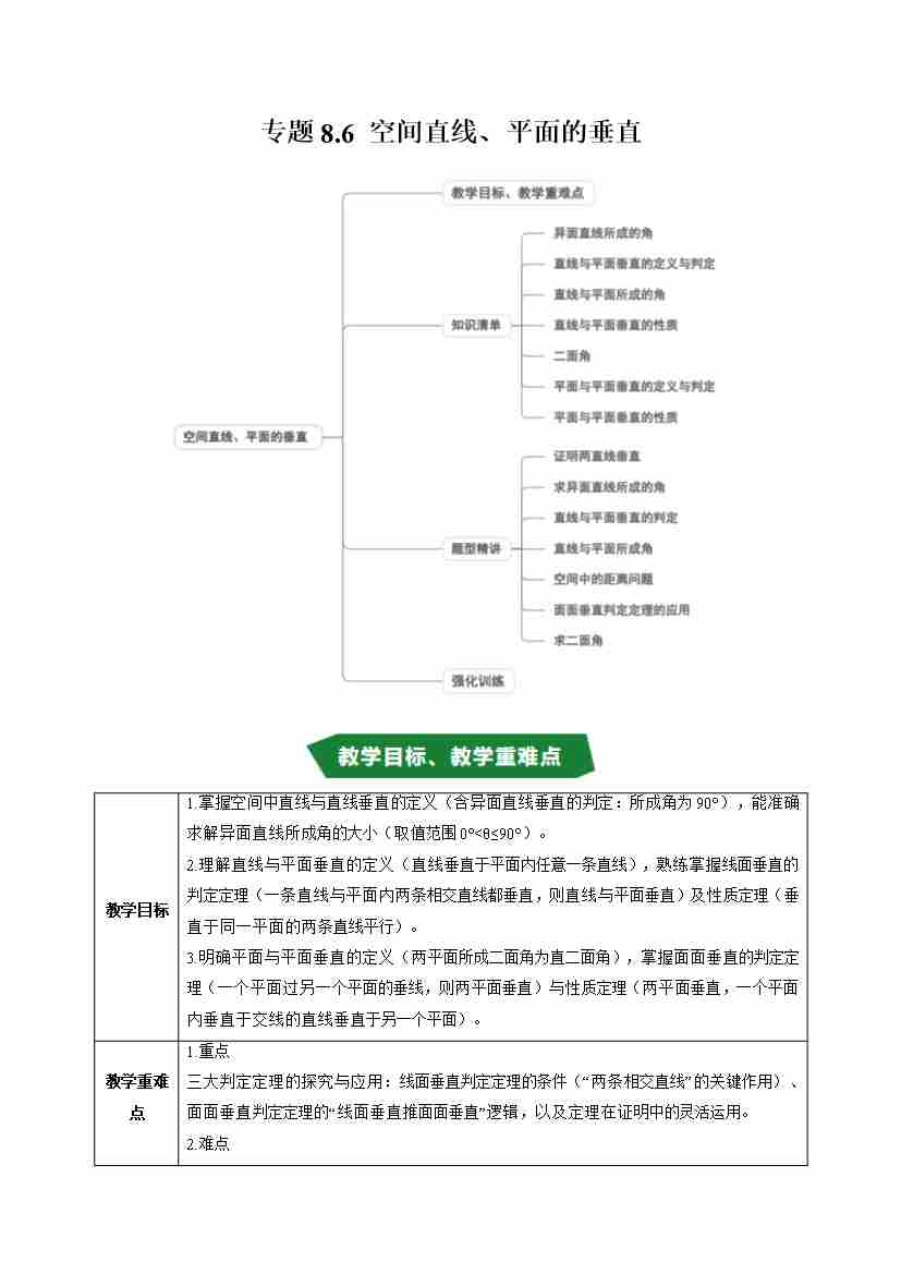 专题8.6 空间直线、平面的垂直(高效培优讲义)(试题版)