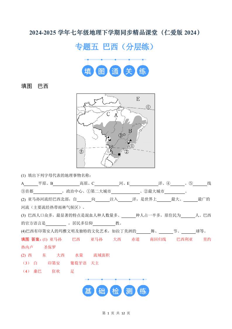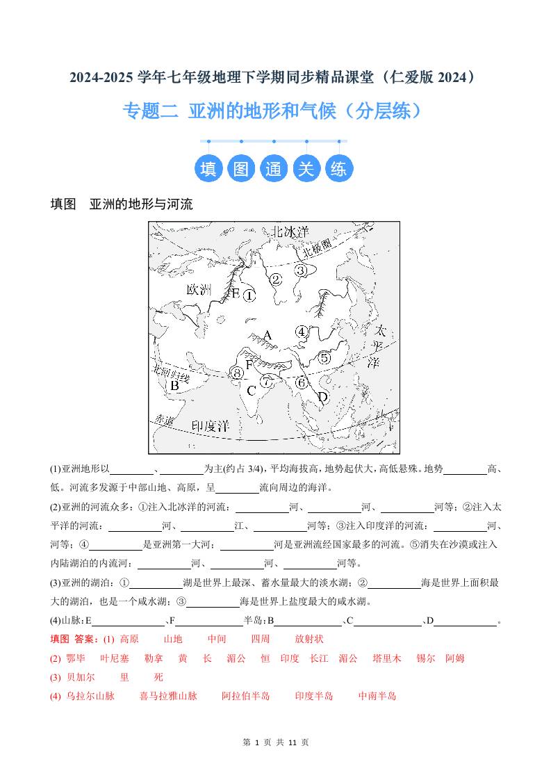 【单元1】专题2 亚洲的地形和气候(分层练)(原卷版)