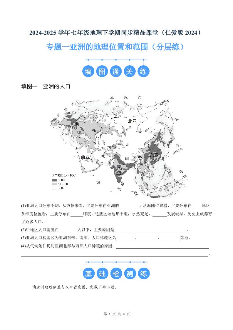【单元1】专题3 亚洲的人口和经济(分层练)(原卷版)