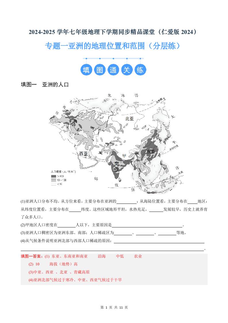 【单元1】专题3 亚洲的人口和经济(分层练)(解析版)