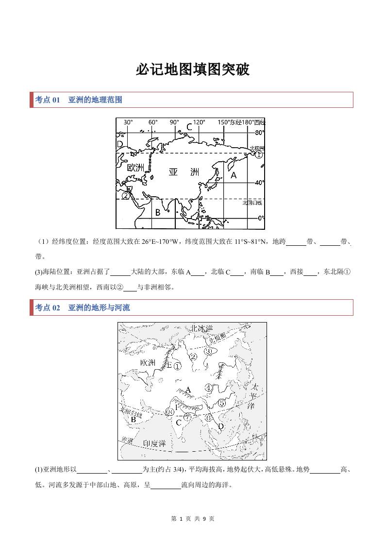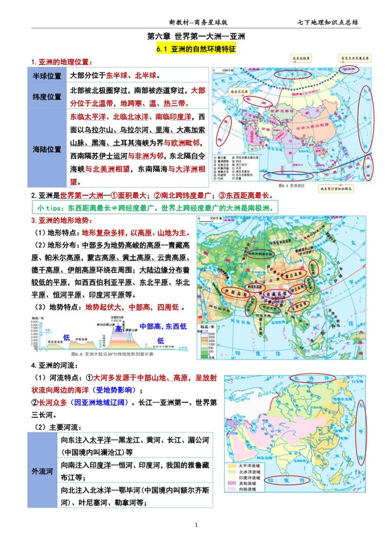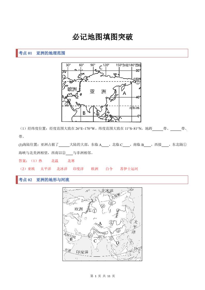 1第六章 世界第一大洲——亚洲【速记清单】(填空版)