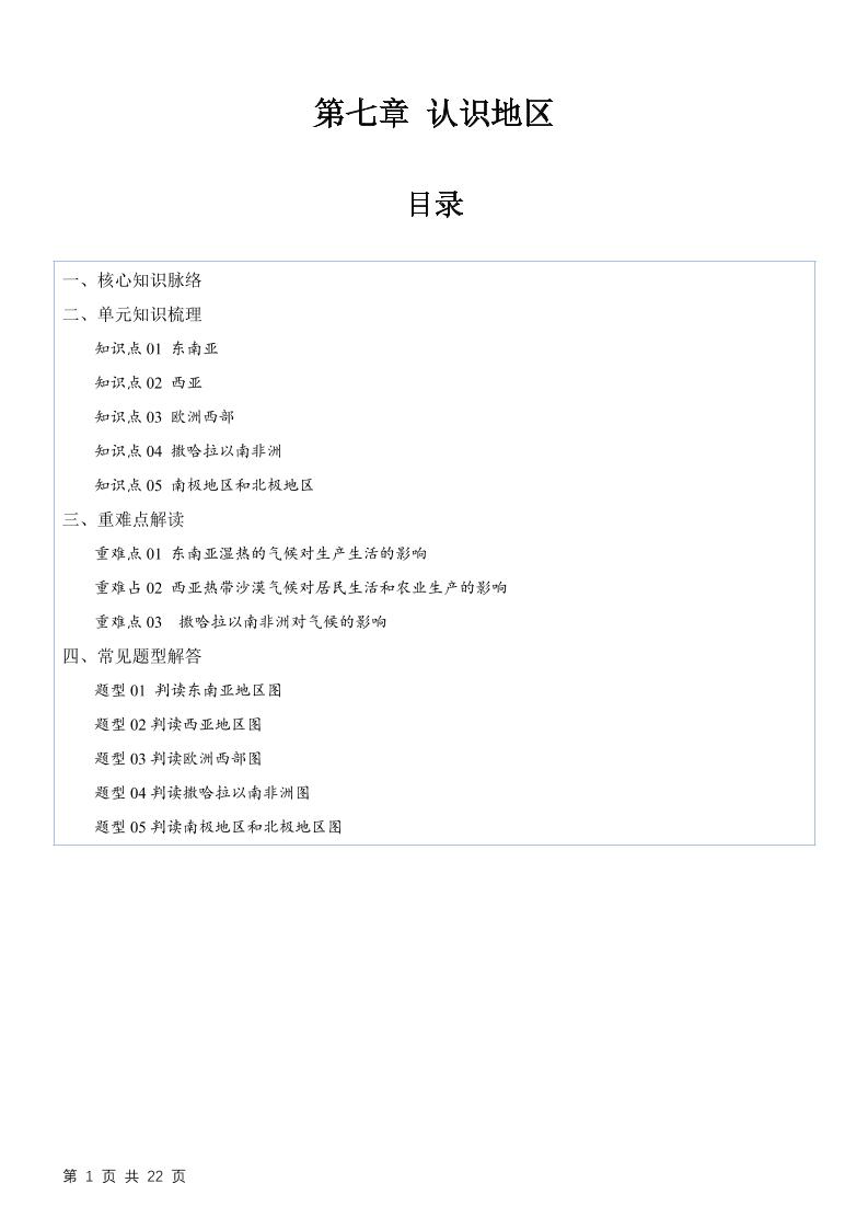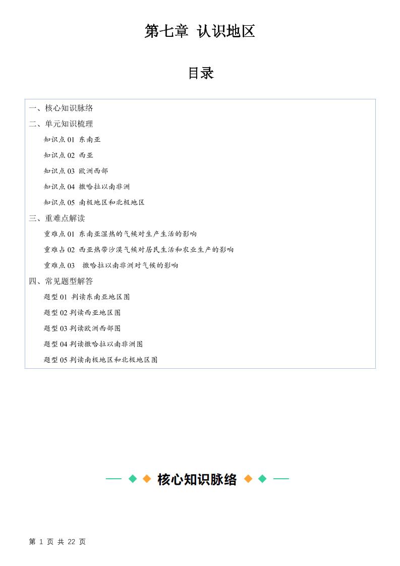 2第七章 认识地区【速记清单】(答案版)