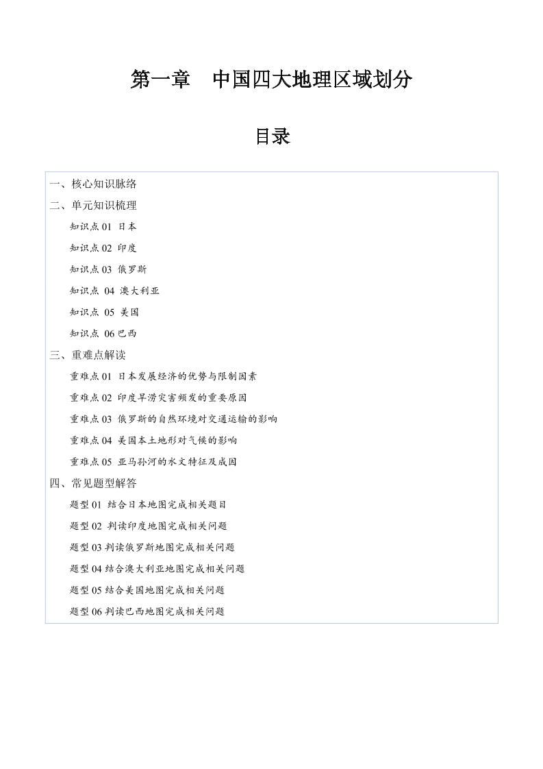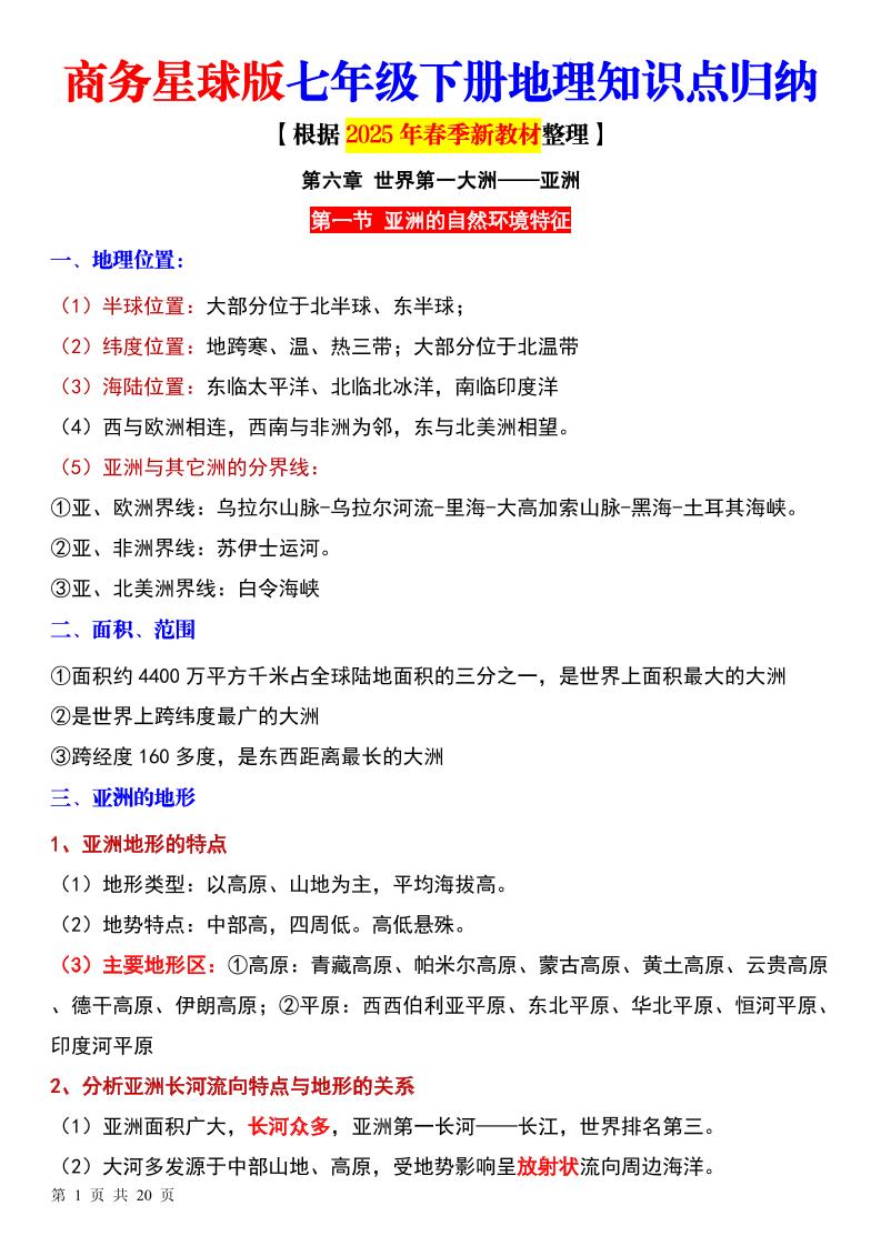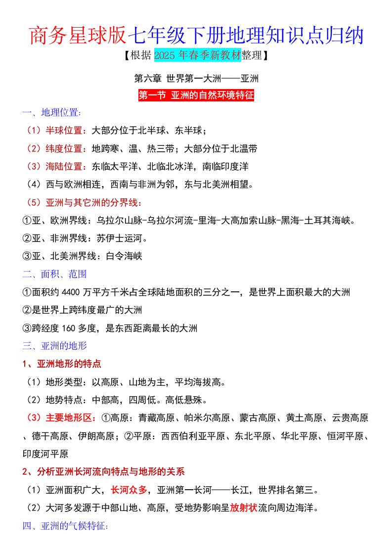 25新商务星球版七下地理知识点总结