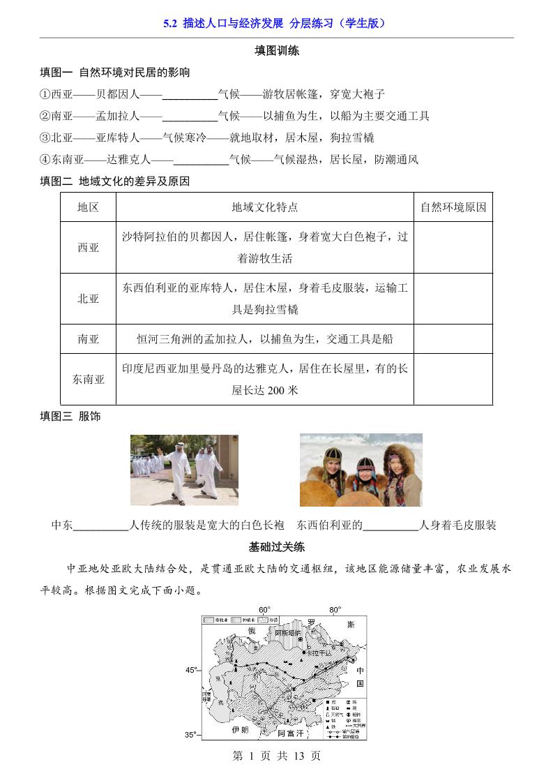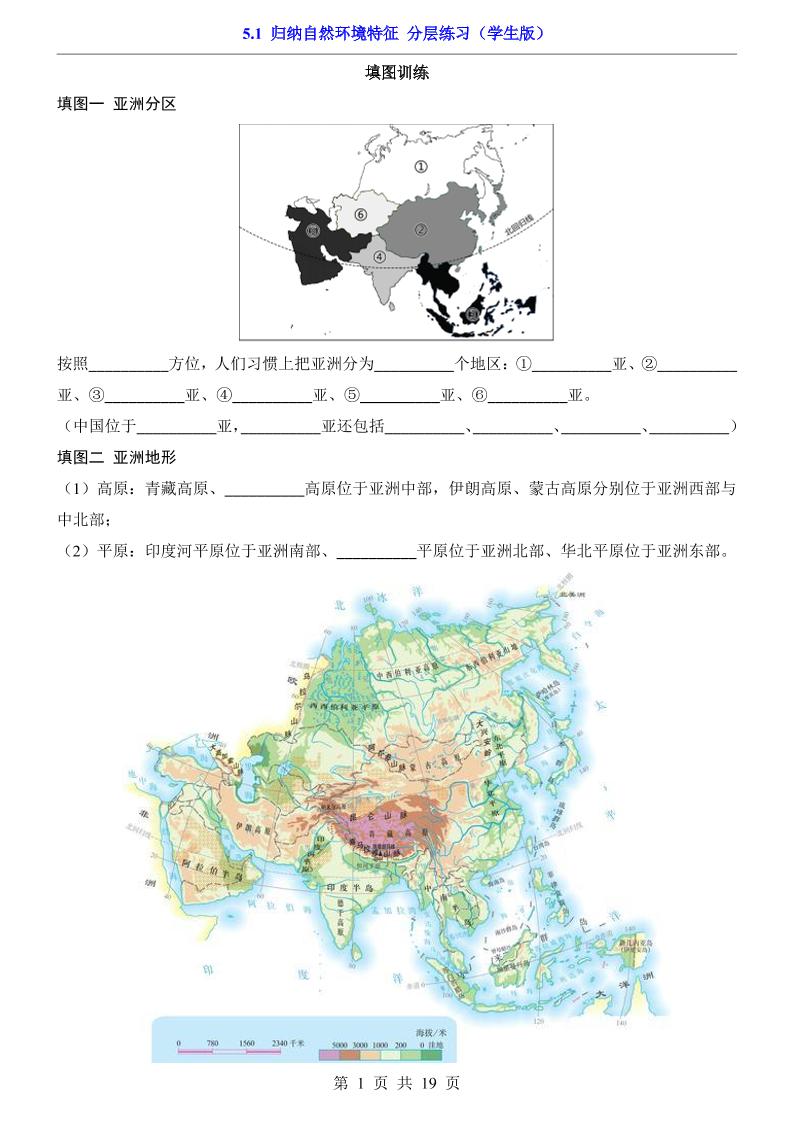 5.1 归纳自然环境特征(分层练习)