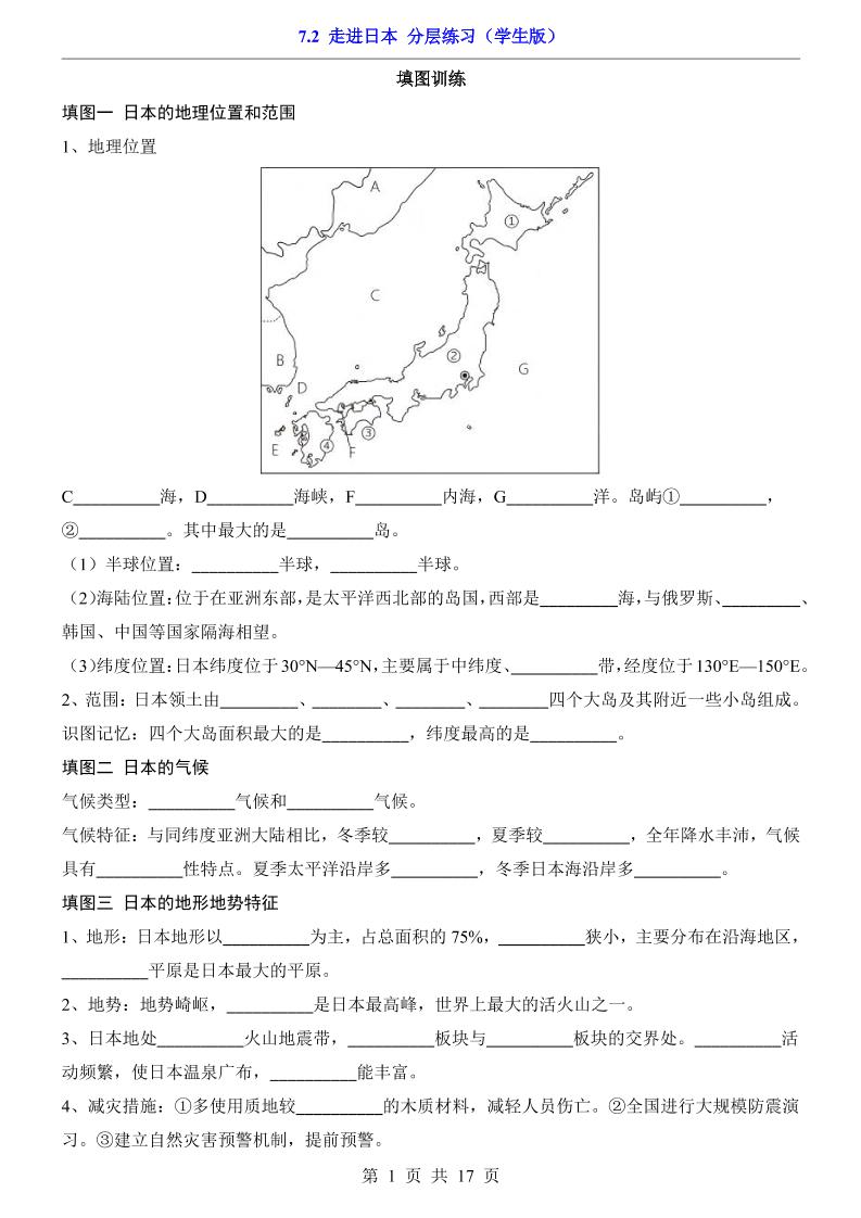 7.2 走进日本(分层练习)
