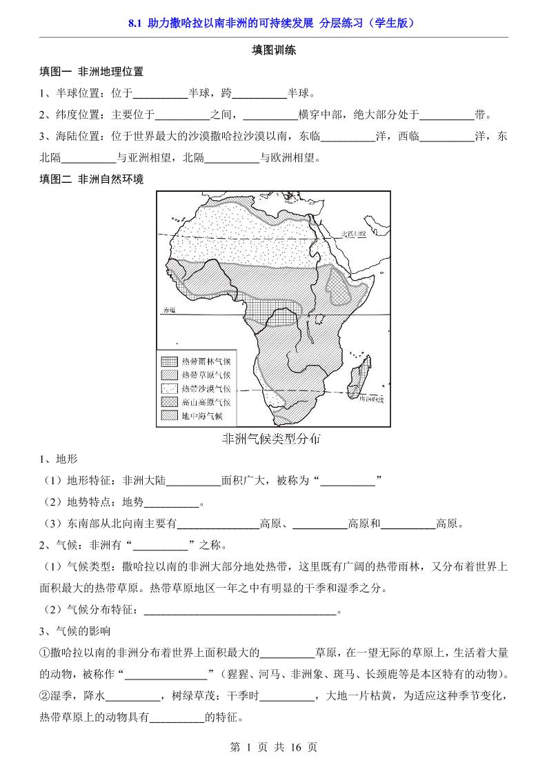 8.1 助力撒哈拉以南非洲的可持续发展(分层练习)