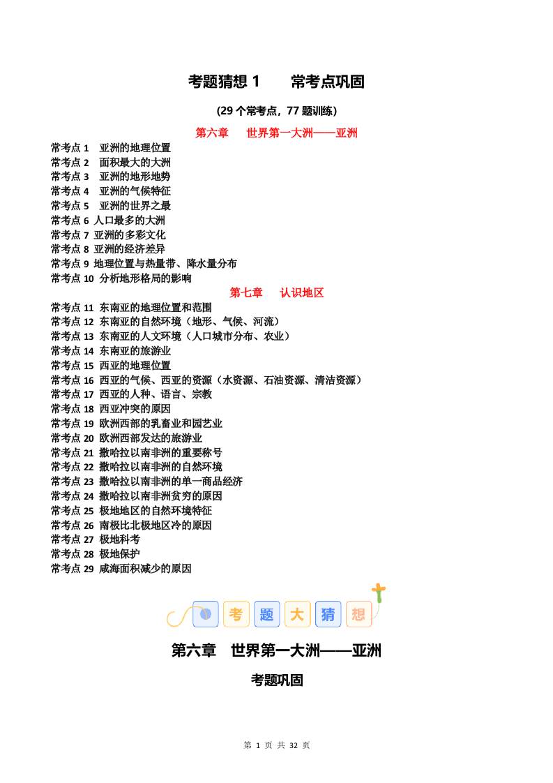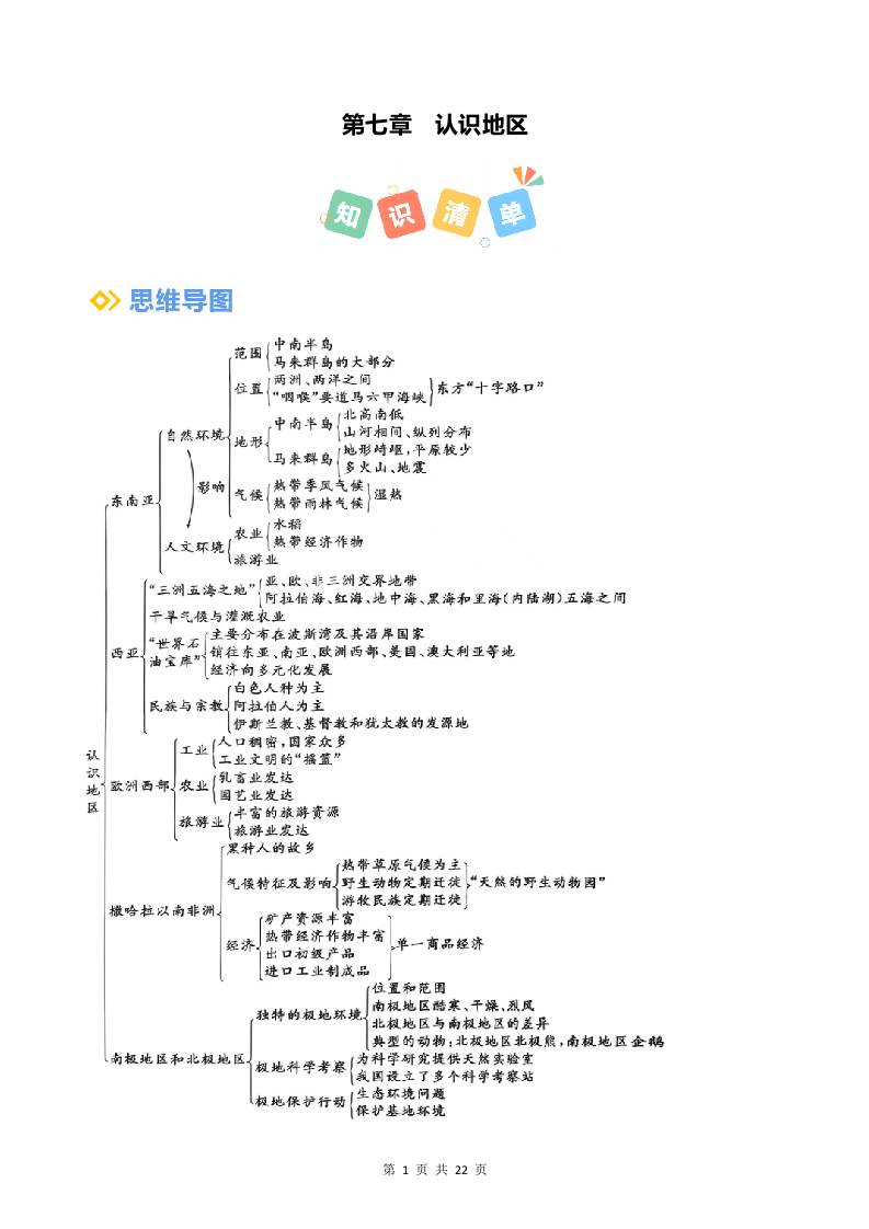 第七章 认识地区【考点清单】