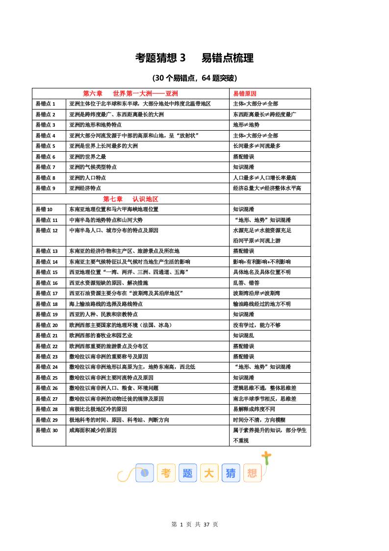 考题猜想03 易错点梳理(原卷版)