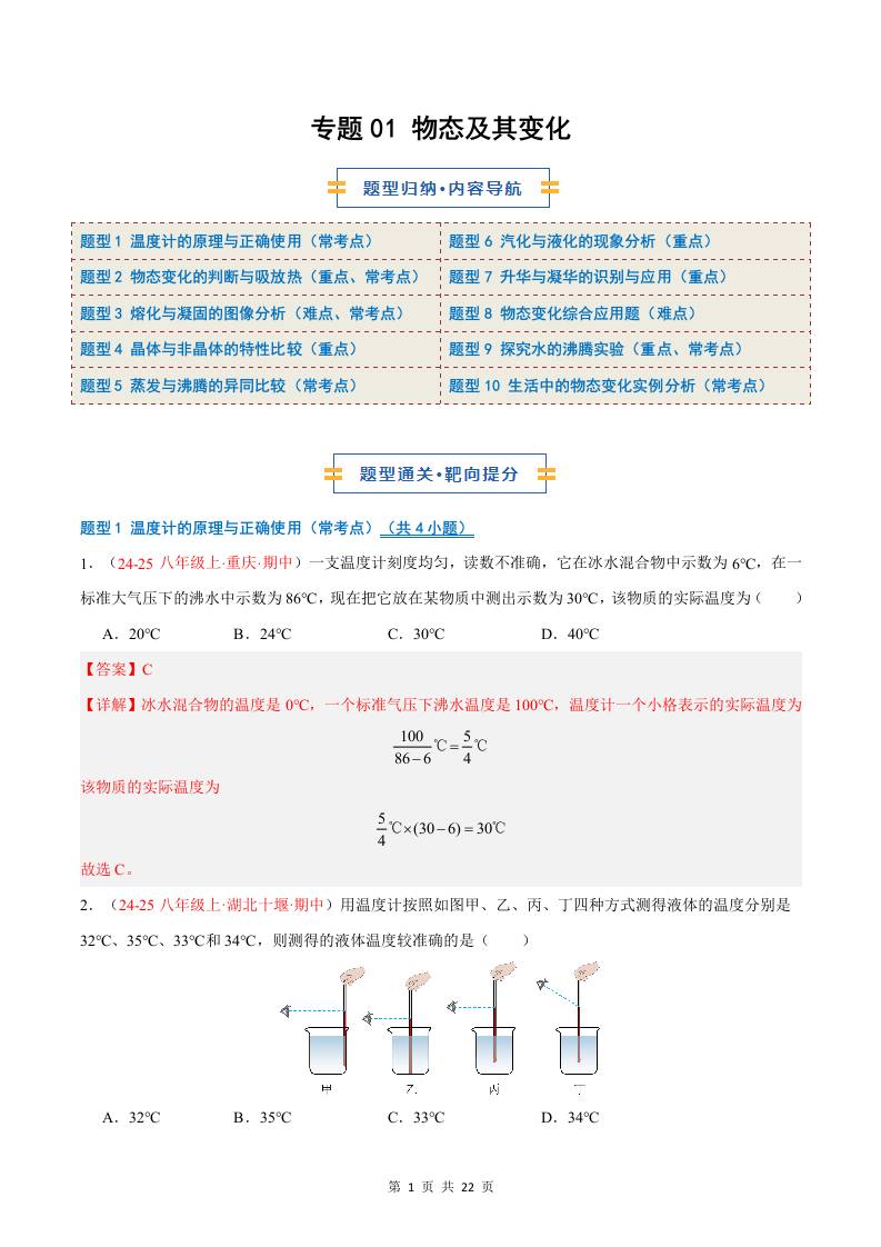 专题01 物态及其变化(期中专项训练)(解析版)八上物理新版北师版