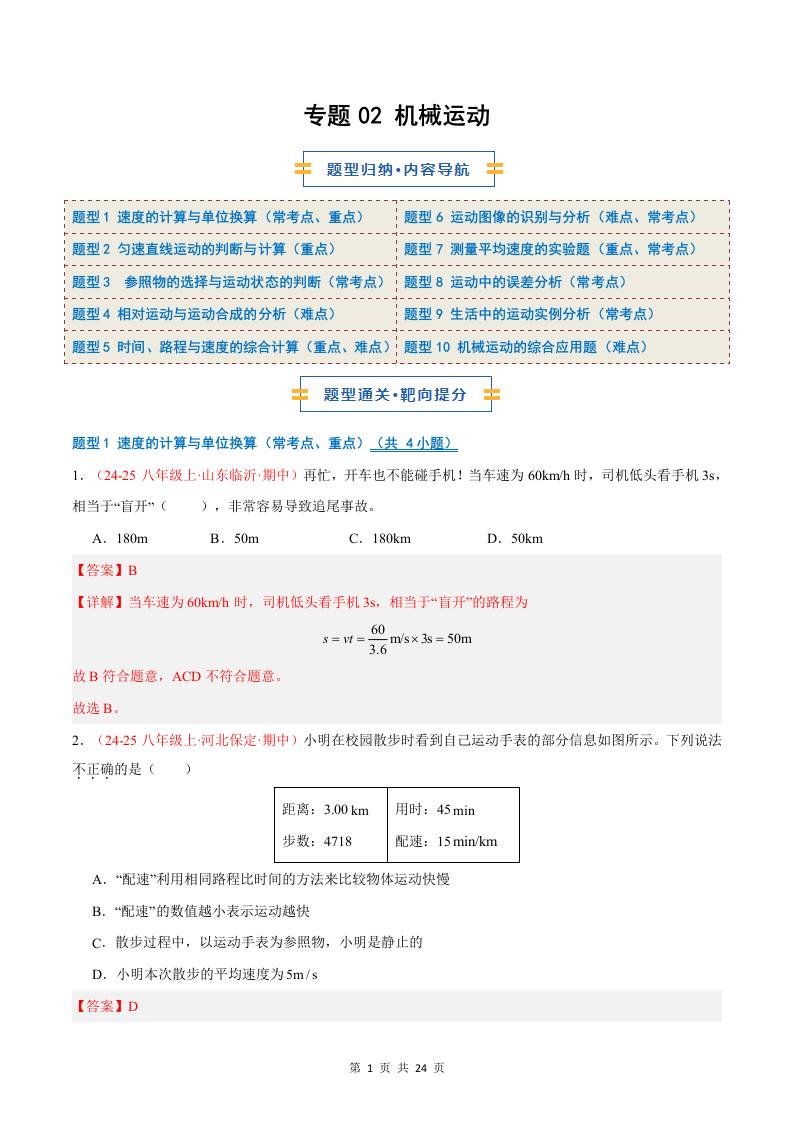 专题02 机械运动(期中专项训练)(解析版)八上物理新版北师版