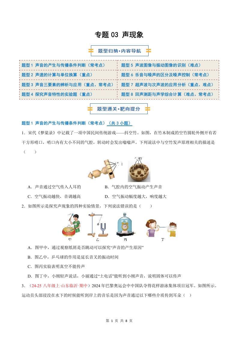 专题03 声现象(期中专项训练)(原卷版)八上物理新版北师版