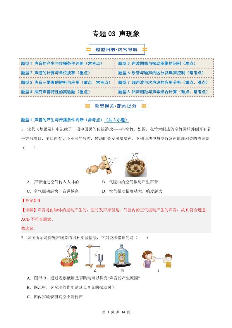 专题03 声现象(期中专项训练)(解析版)八上物理新版北师版