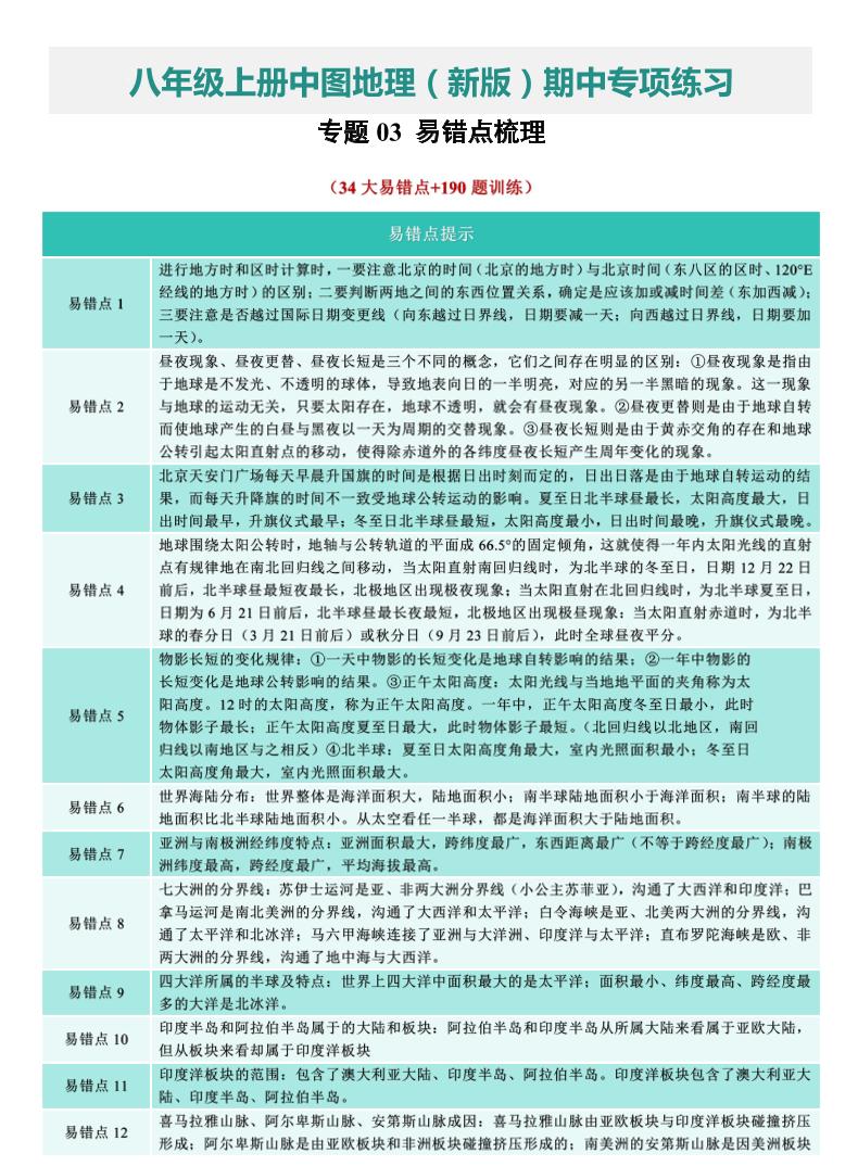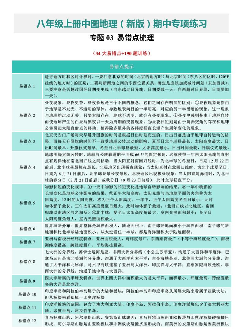 【八上中图地理】专题03 易错点梳理(期中专项训练)(原卷版)3