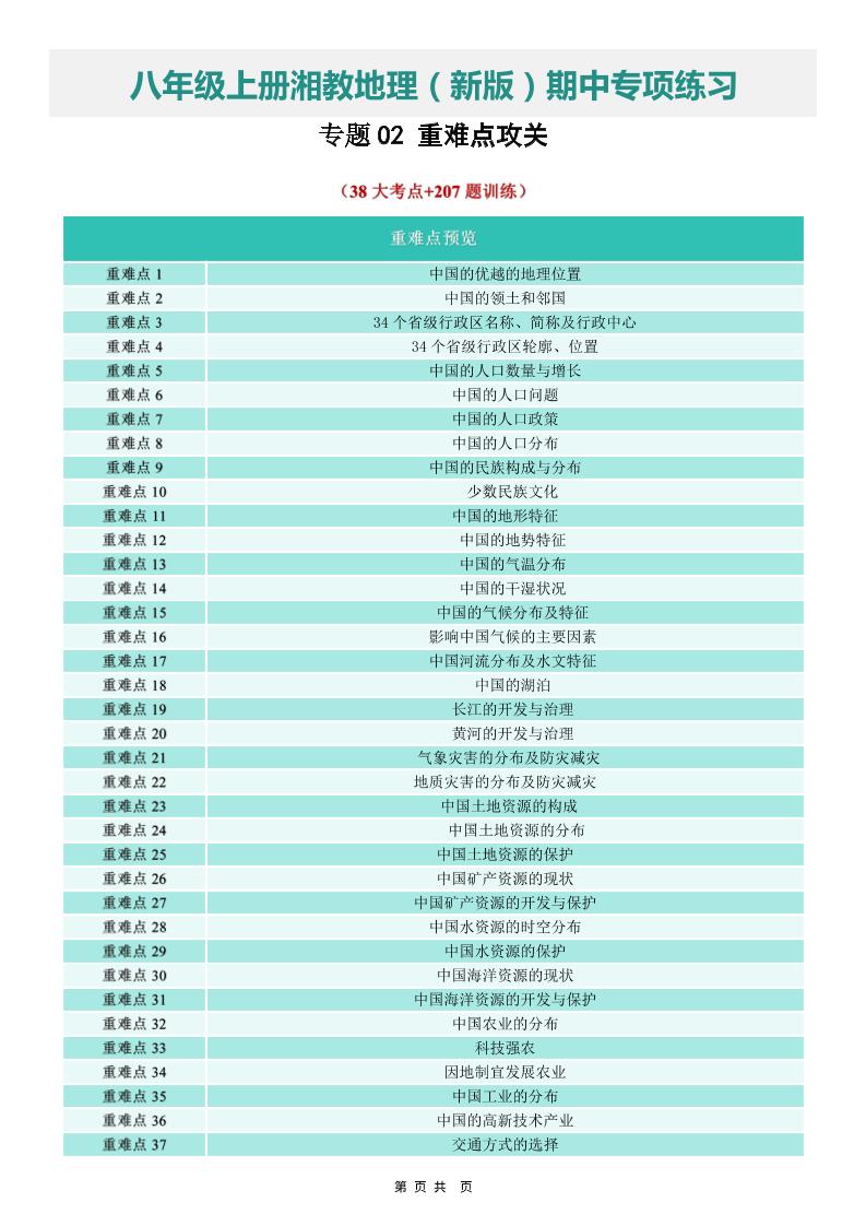 【八上湘教地理】专题02 重难点攻关(期中专项训练)(解析版).