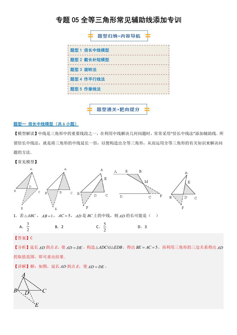 【八上冀教数学】专题05 全等三角形常见辅助线添加专训(期中专项训练)(解析版)