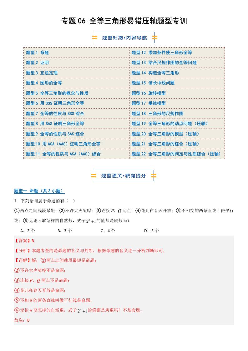 【八上冀教数学】专题06 全等三角形易错压轴题型专训22大题型(期中专项训练)(解析版)