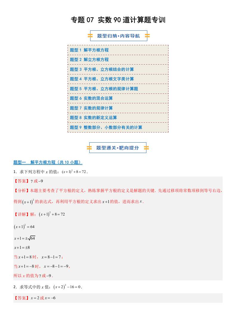【八上冀教数学】专题07 实数90道计算题专训(期中专项训练)(解析版)