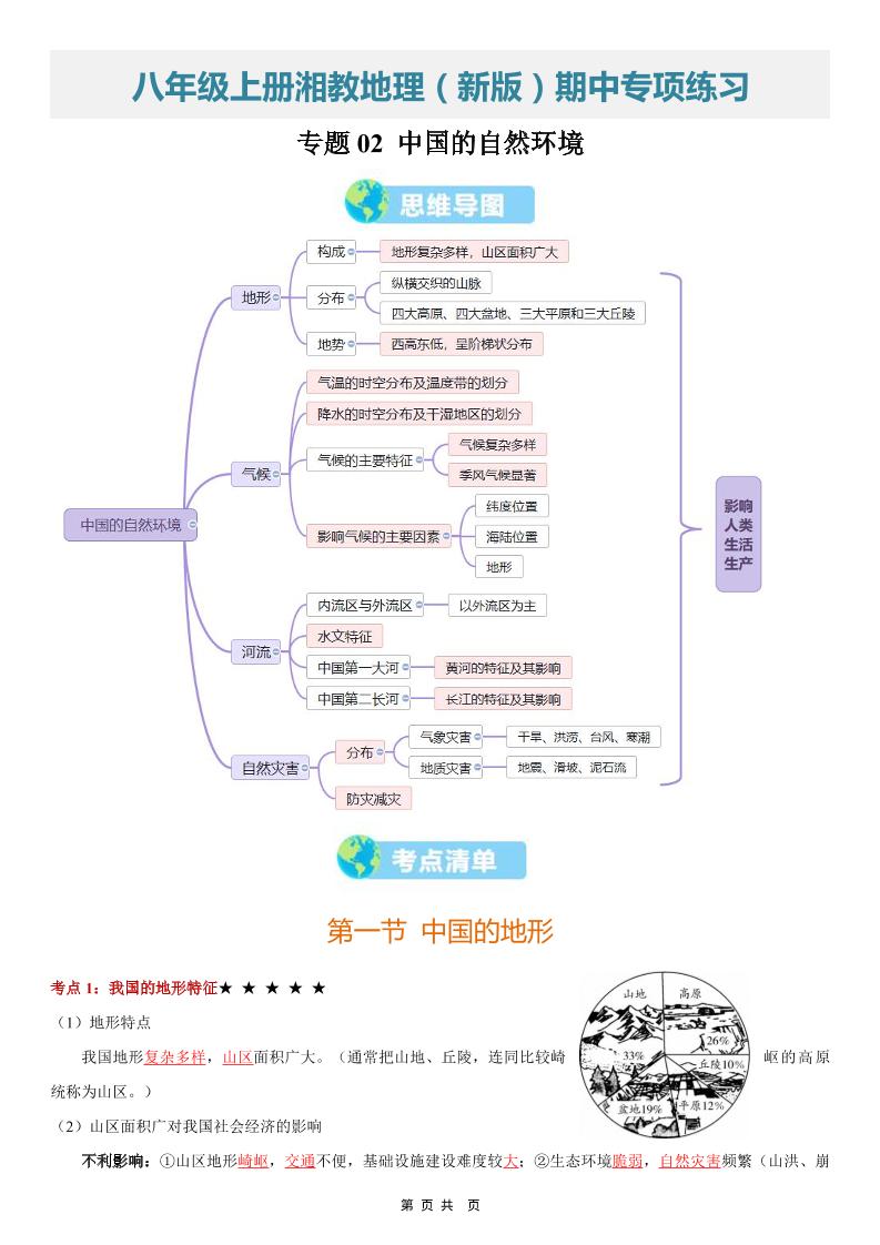 【八上湘教地理】清单02 中国的自然环境(期中知识清单)(背记版)